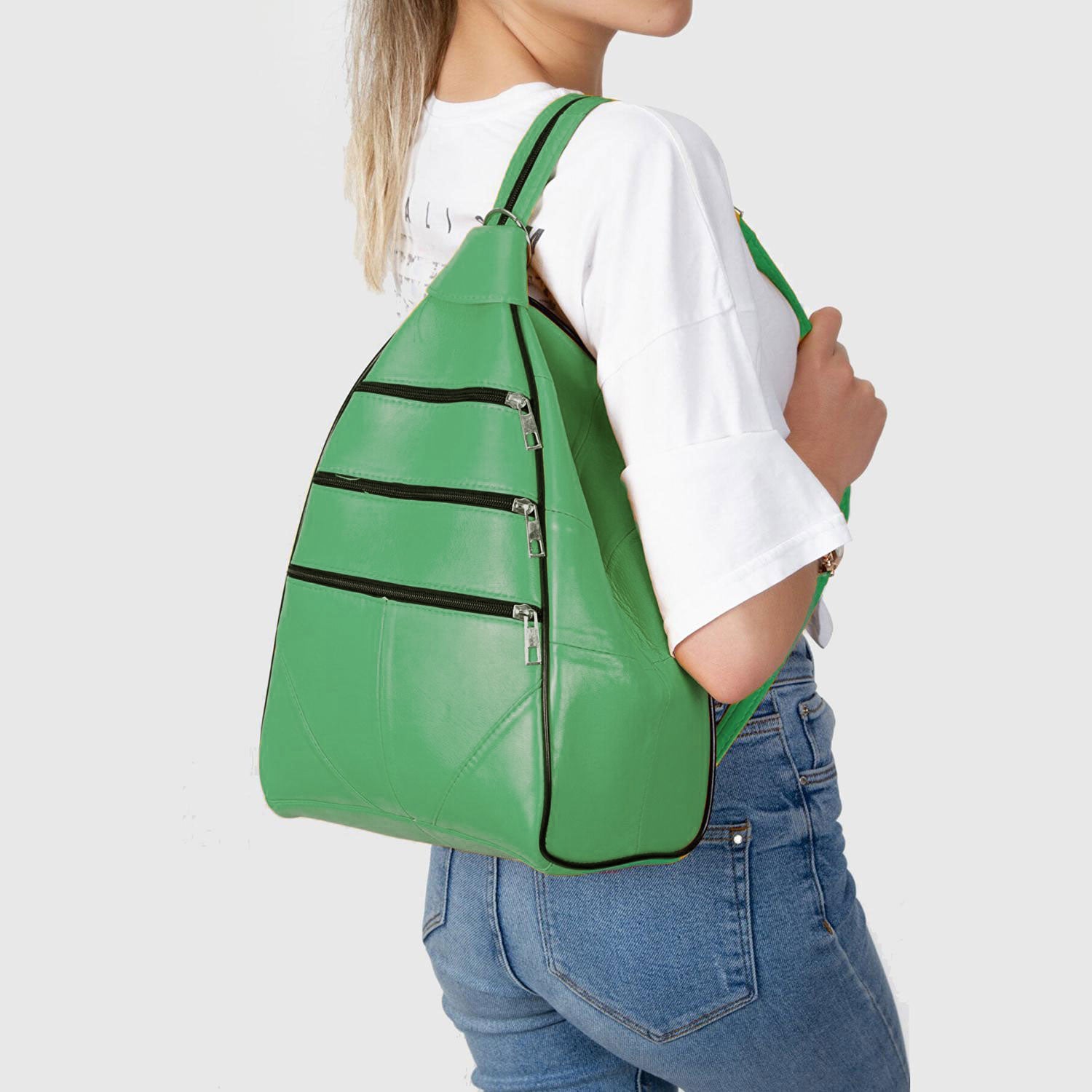 Lederax Hakiki Deri Çok Gözlü Sırt Ve Omuz Çantası LD52 Açık Yeşil