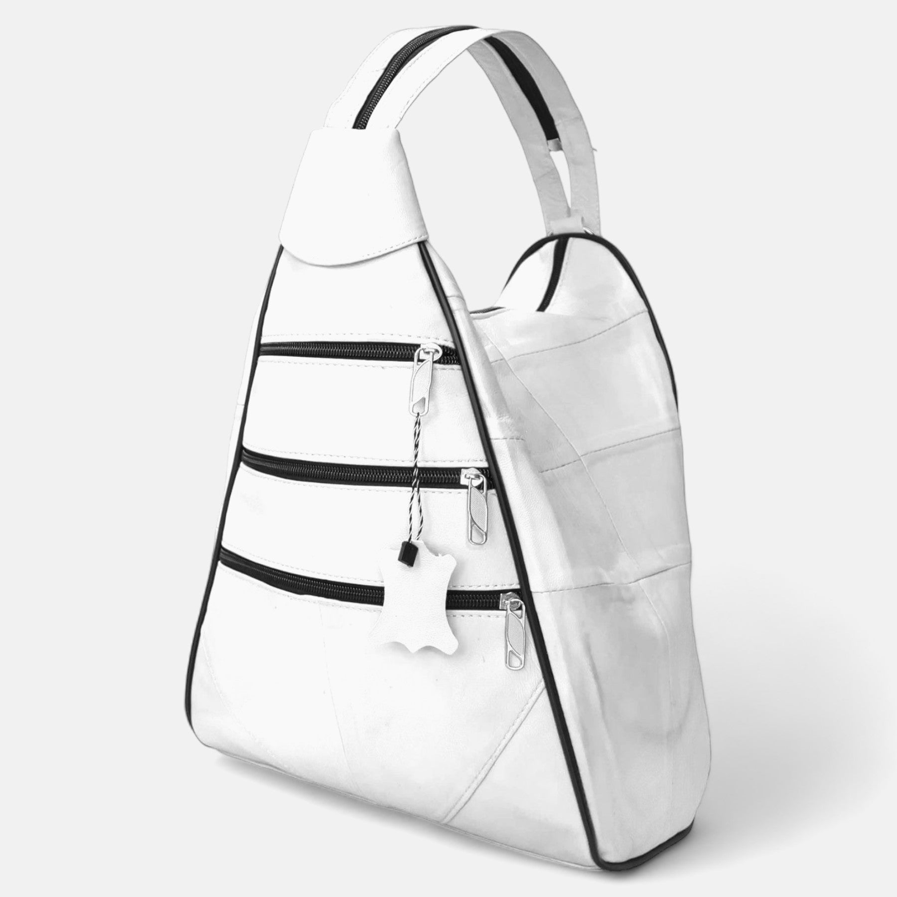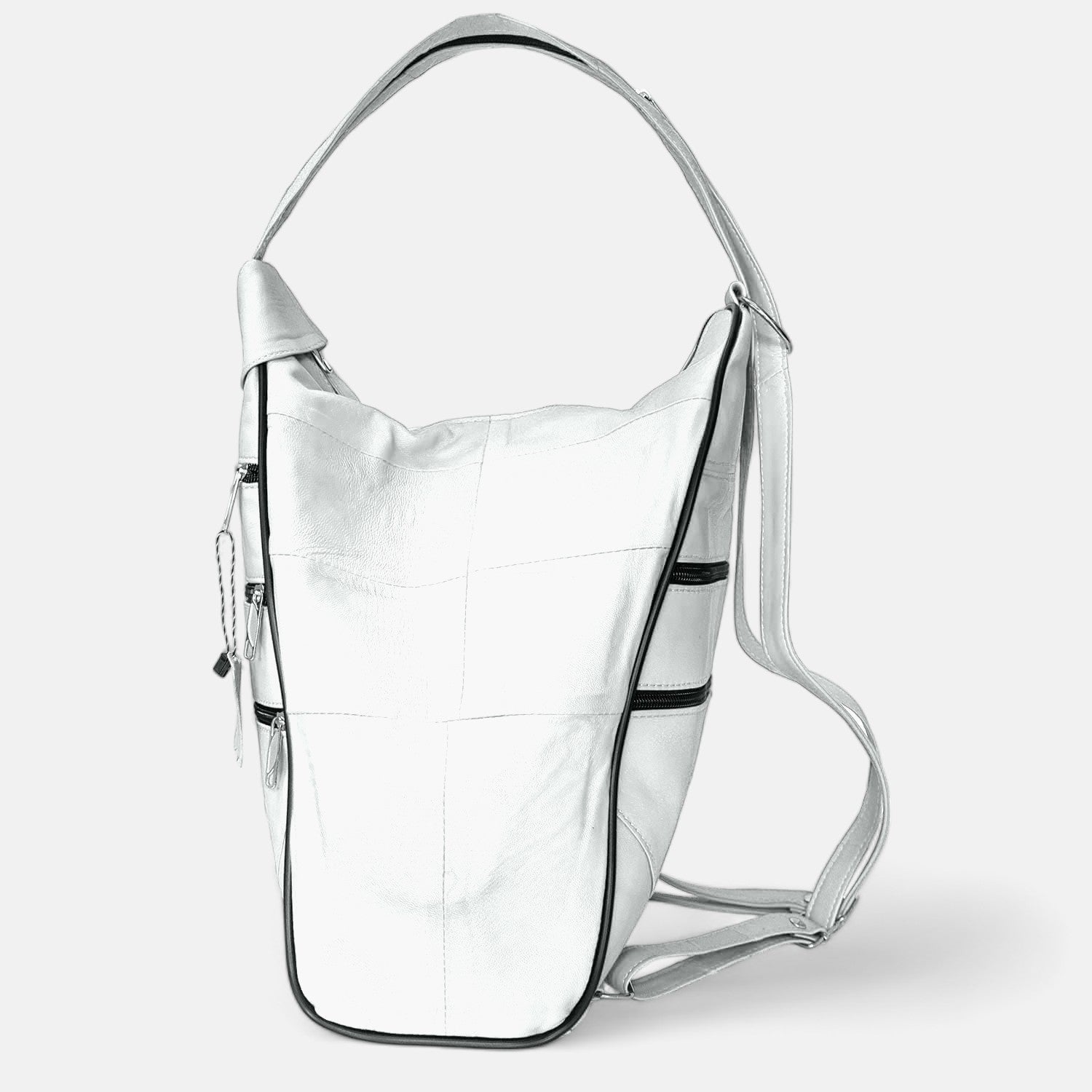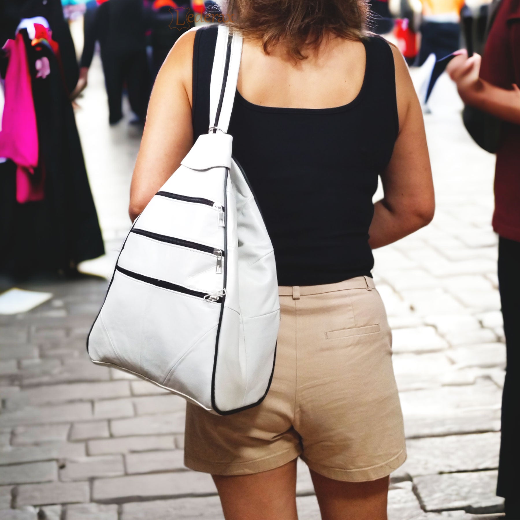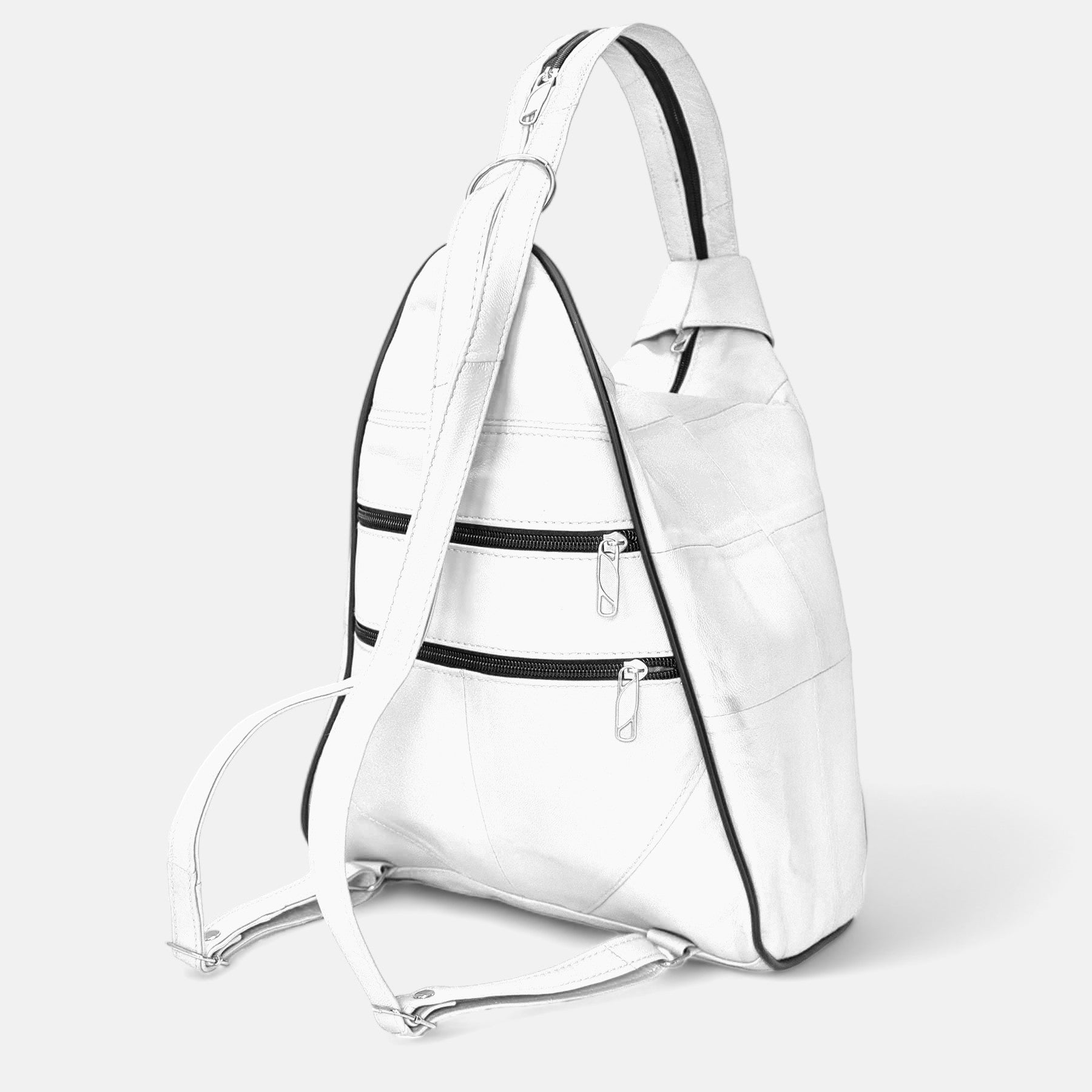 Lederax Hakiki Deri Çok Gözlü Sırt Ve Omuz Çantası LD52 Beyaz