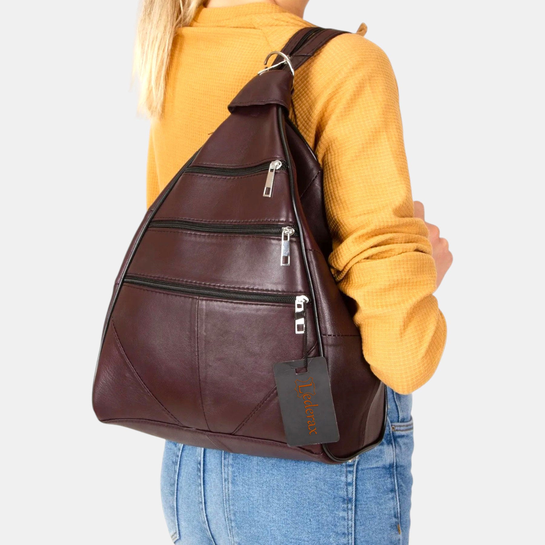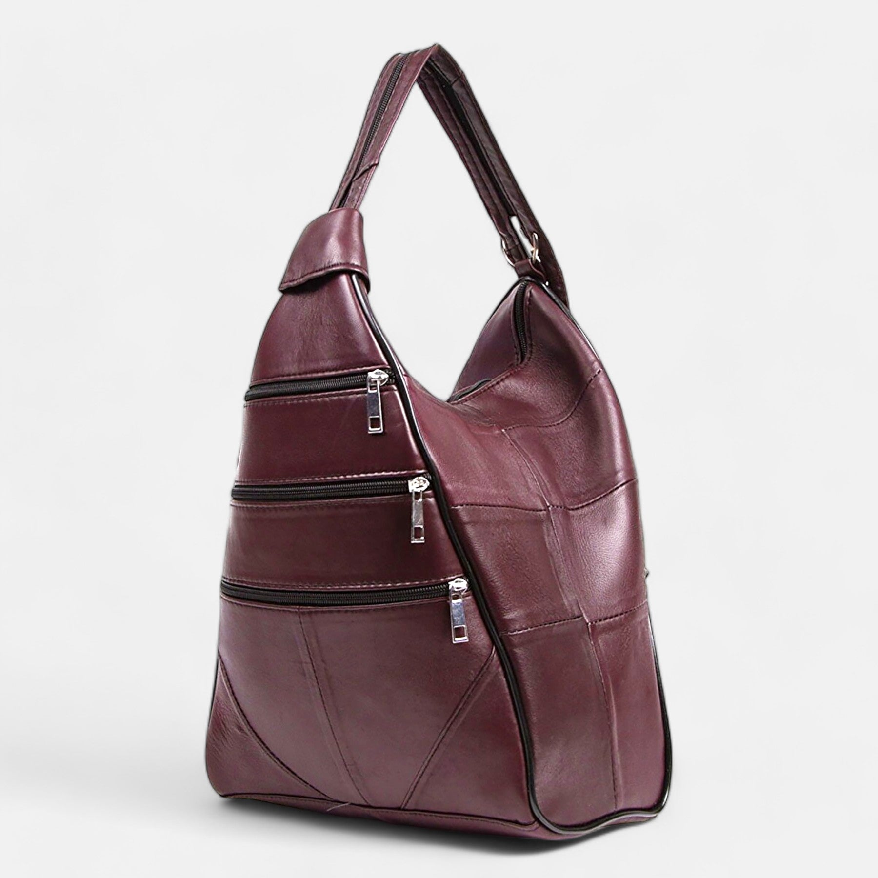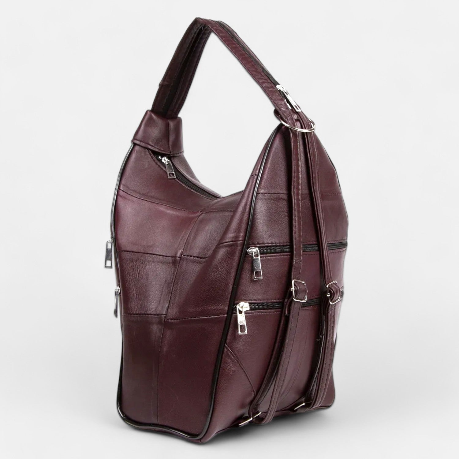 Lederax Hakiki Deri Çok Gözlü Sırt Ve Omuz Çantası LD52 Bordo