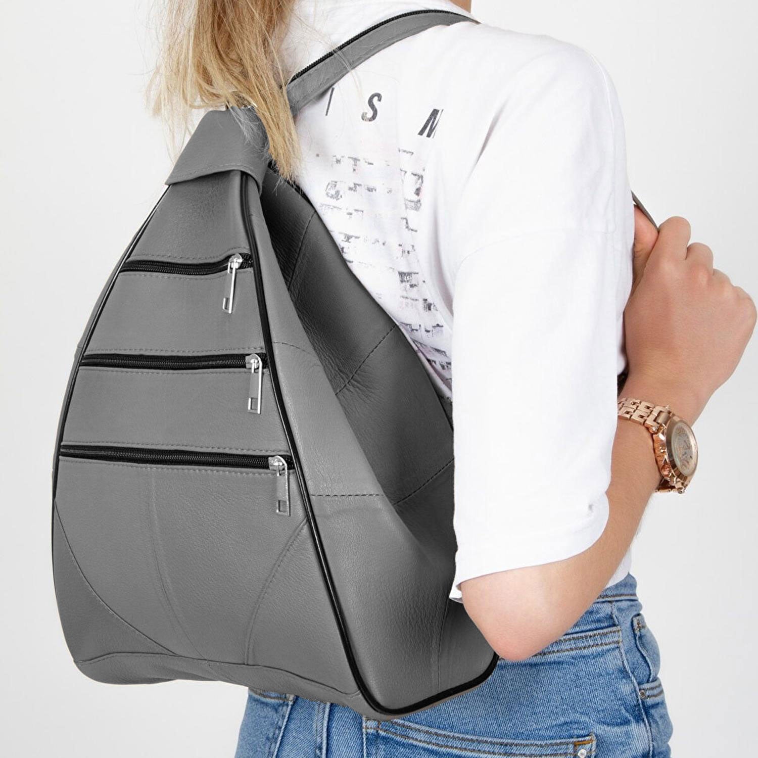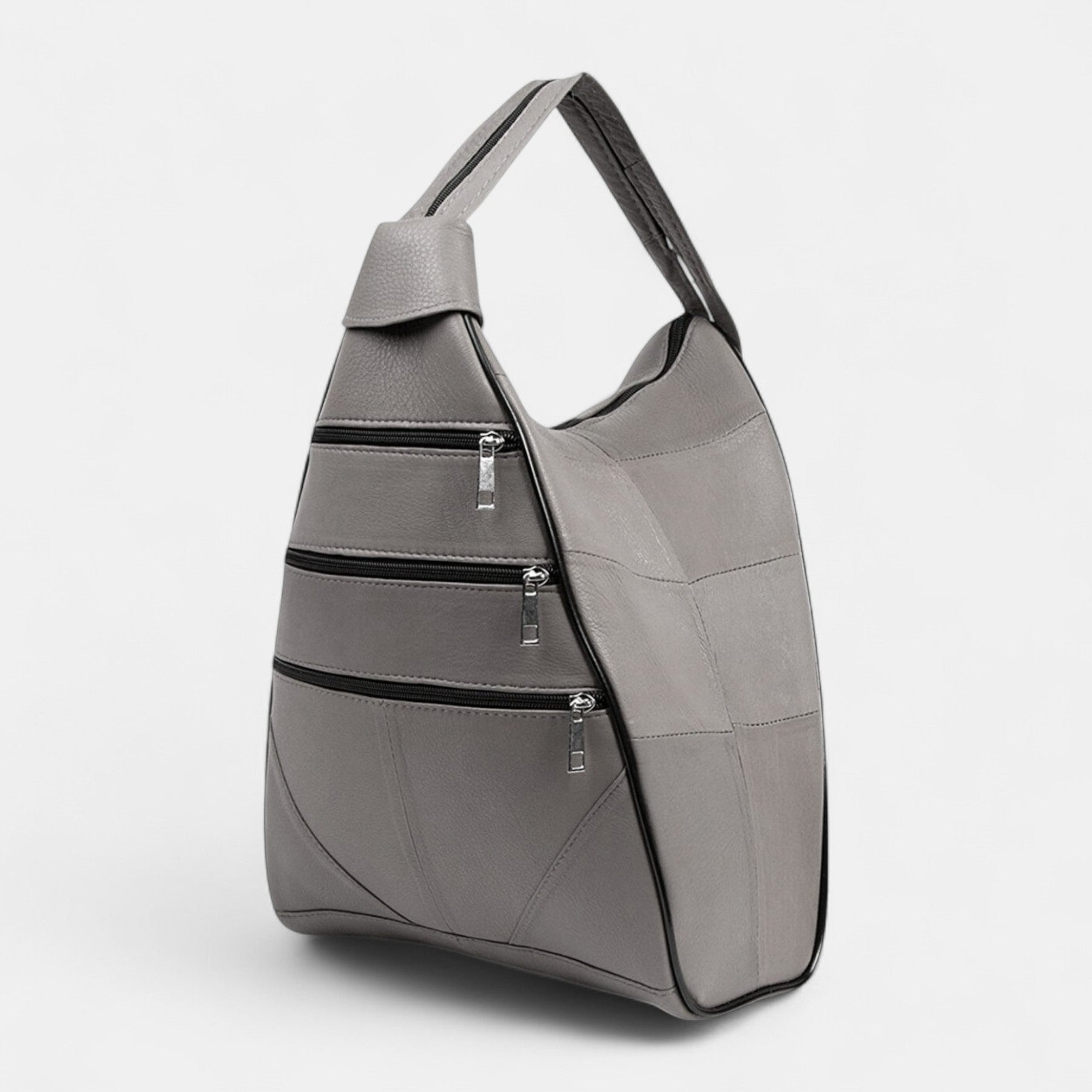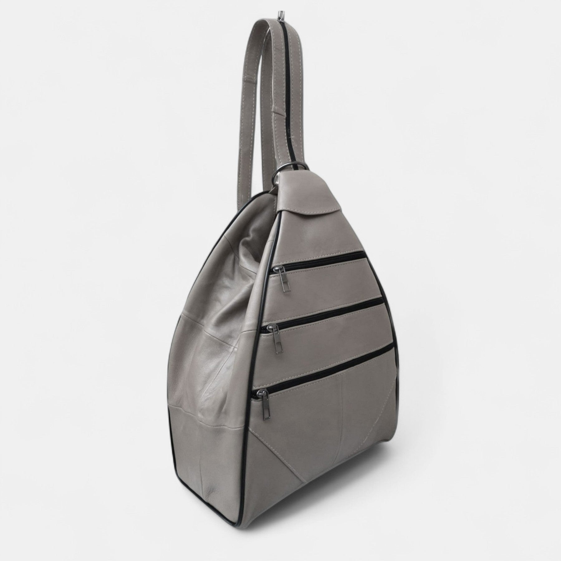 Lederax Hakiki Deri Çok Gözlü Sırt Ve Omuz Çantası LD52 Gri