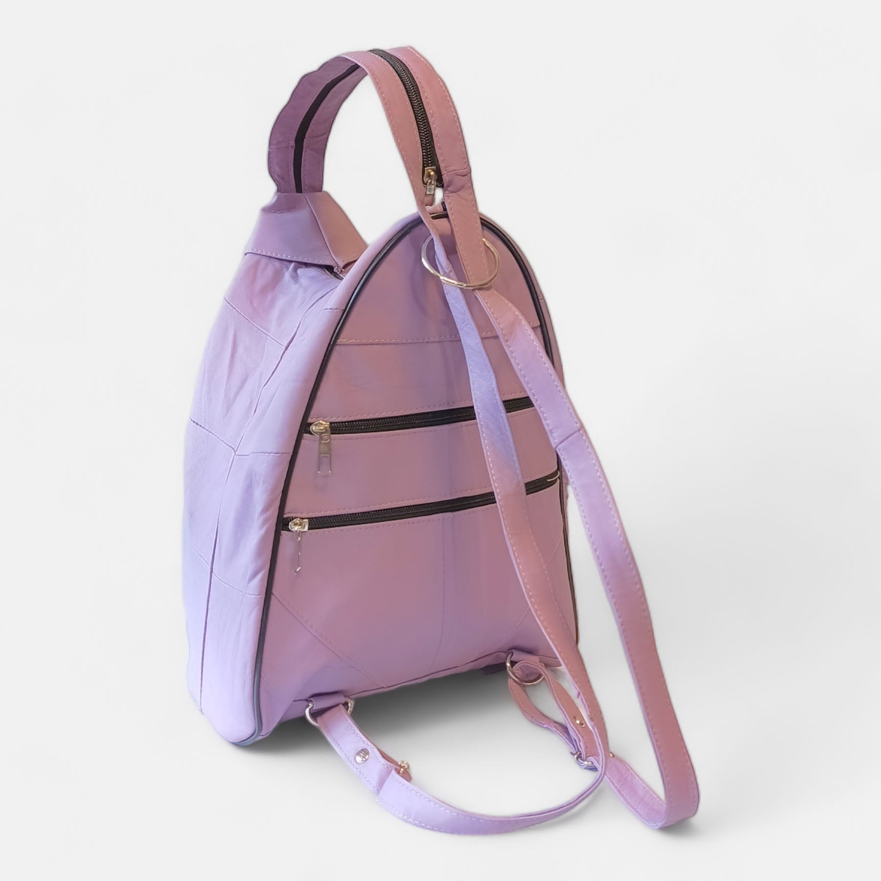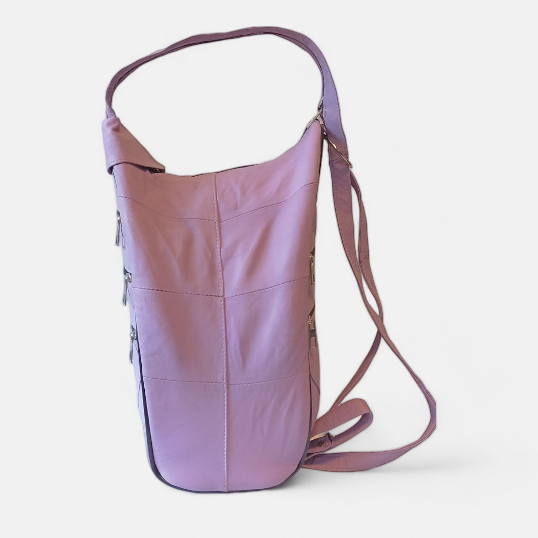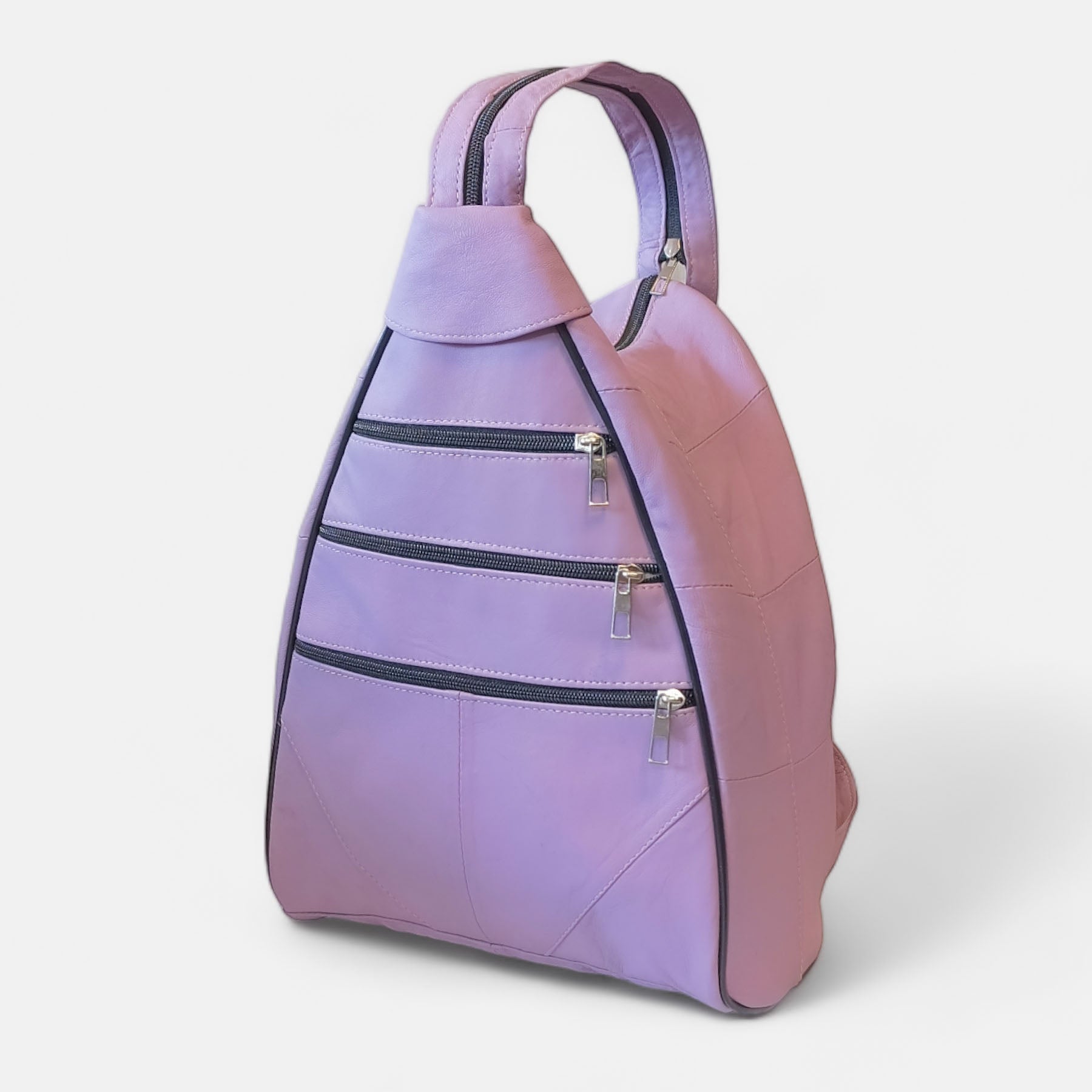 Lederax Hakiki Deri Çok Gözlü Sırt Ve Omuz Çantası LD52 Lila