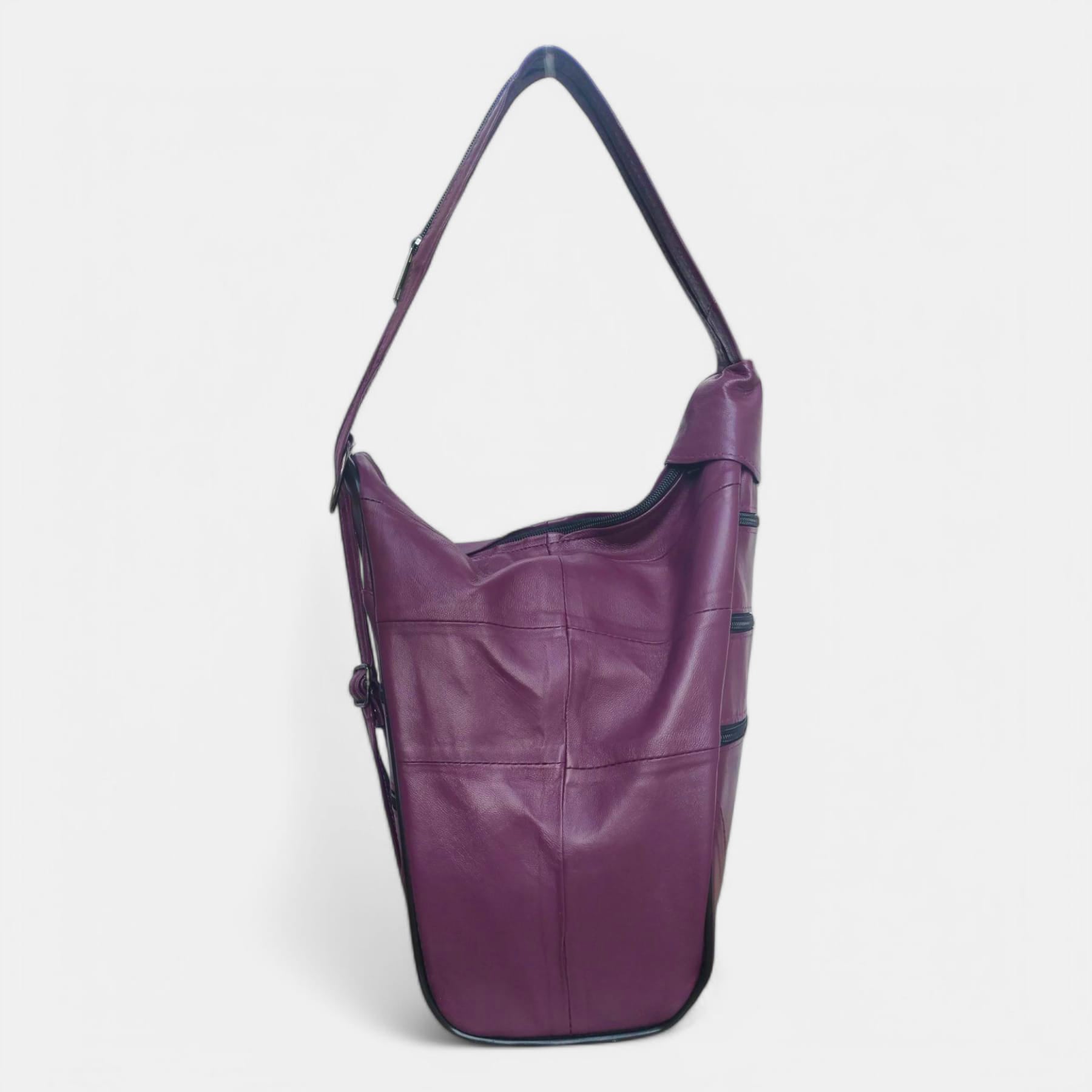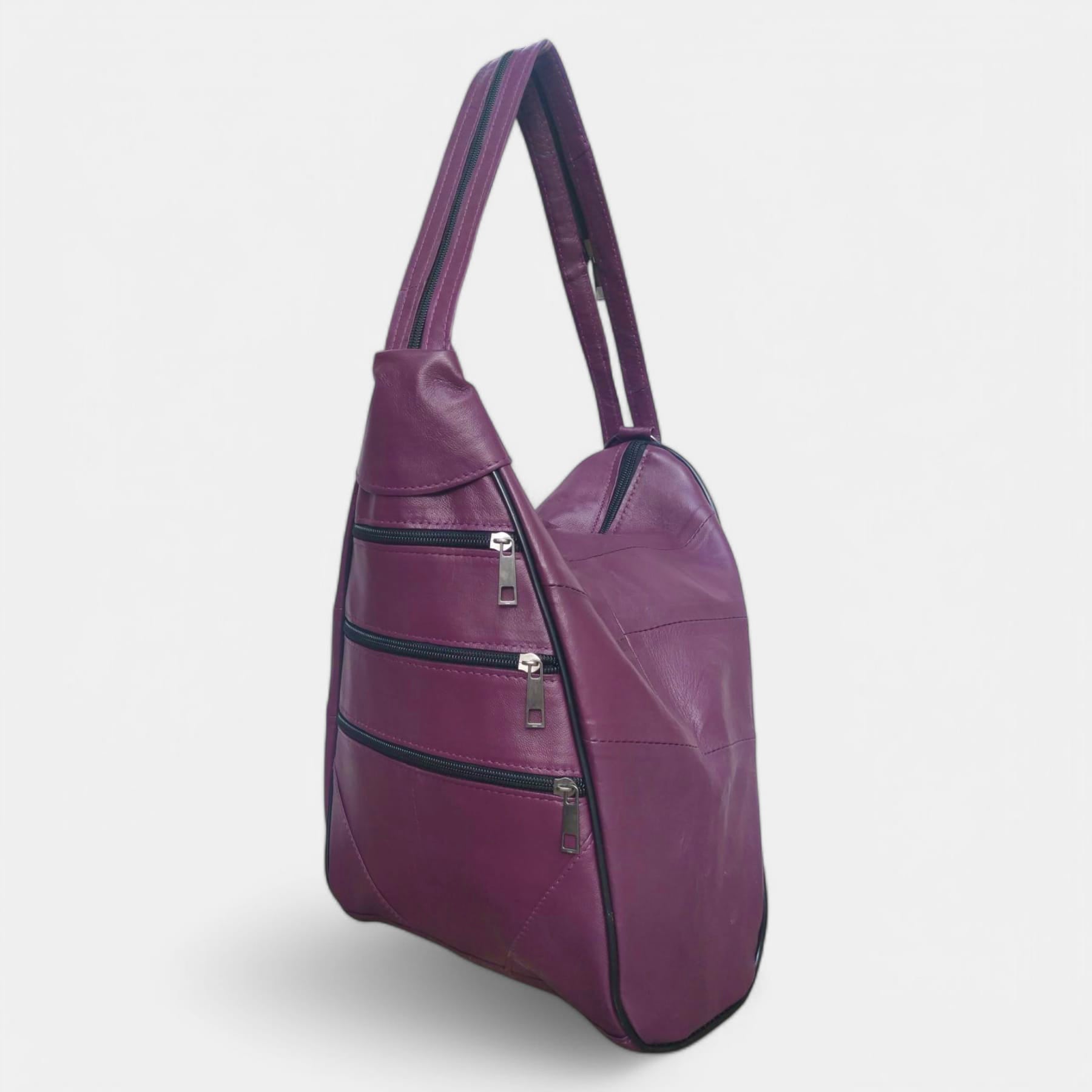Lederax Hakiki Deri Çok Gözlü Sırt Ve Omuz Çantası LD52 Mor