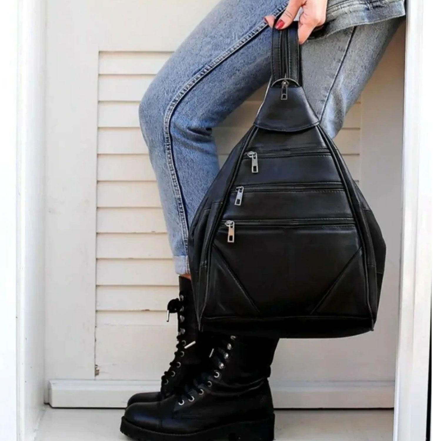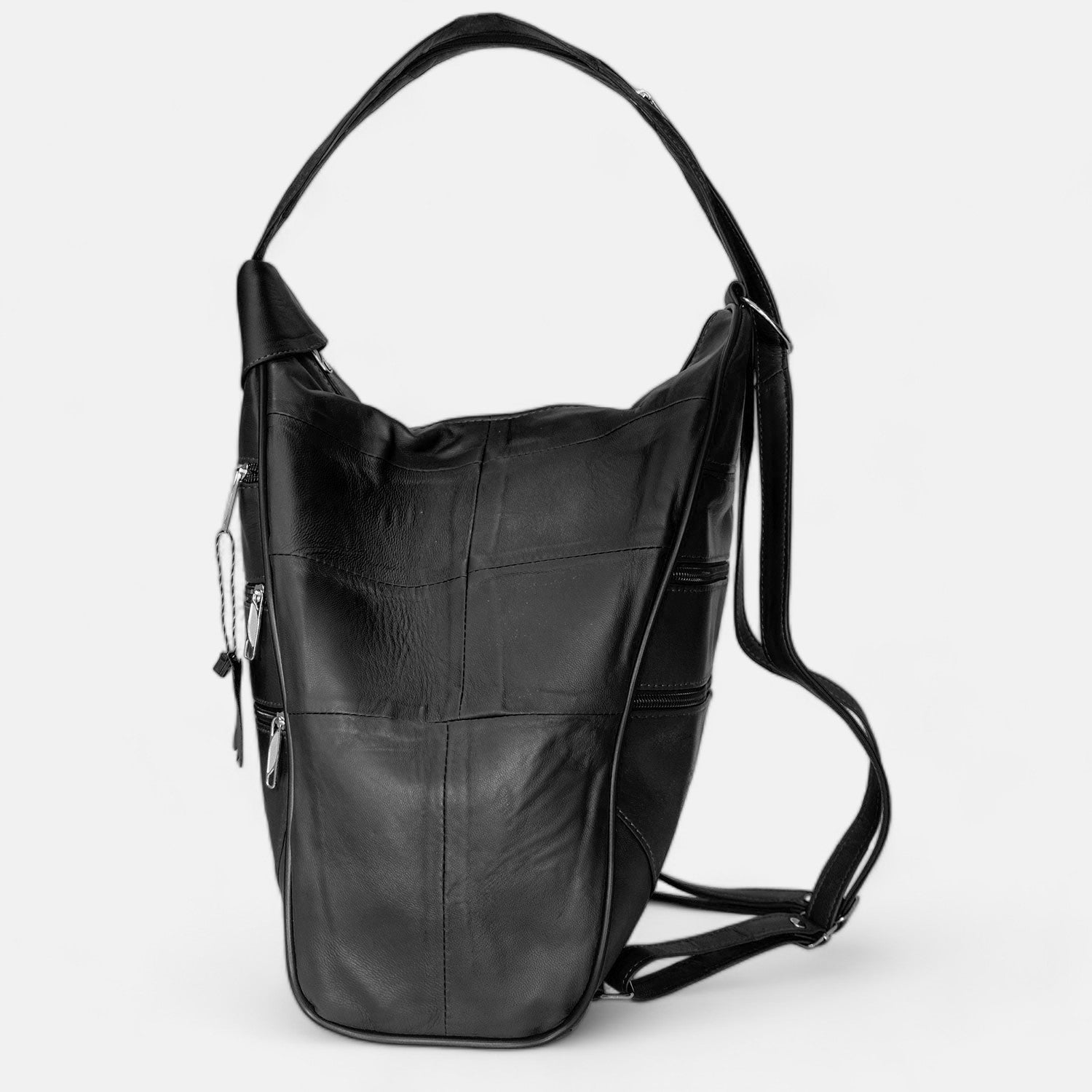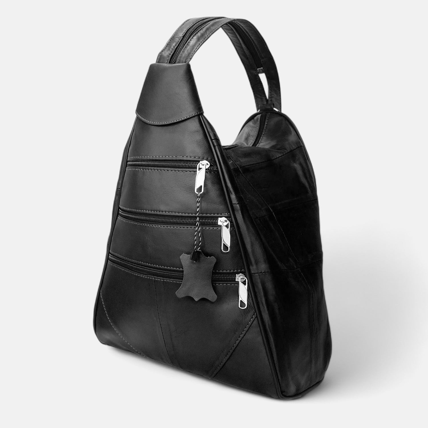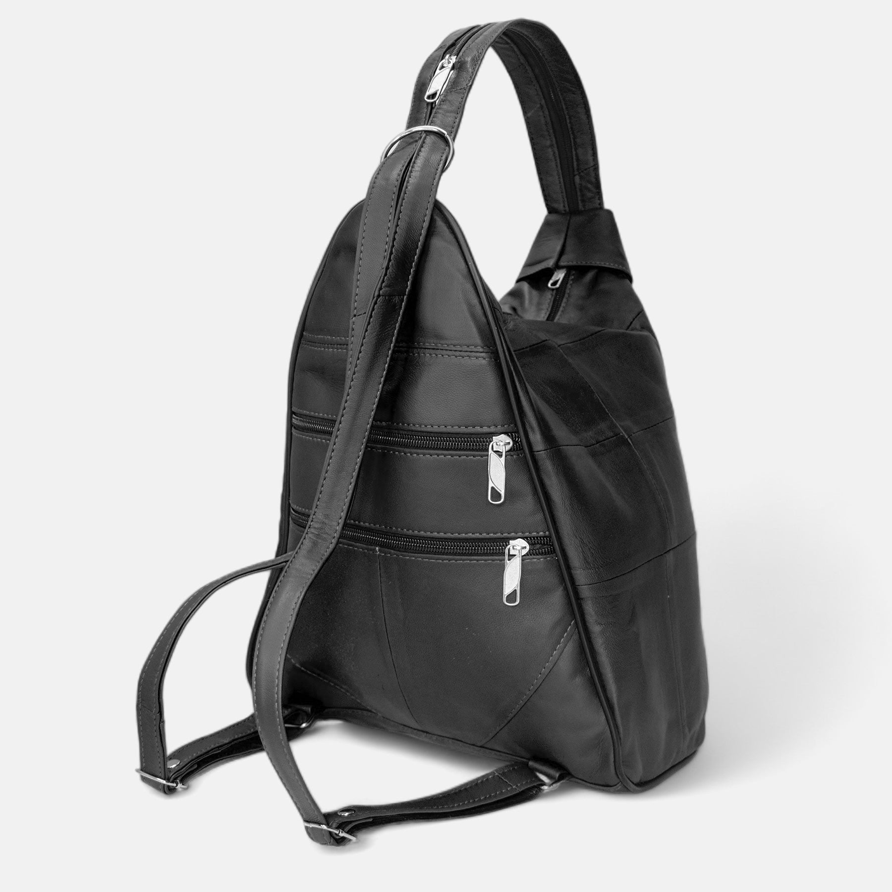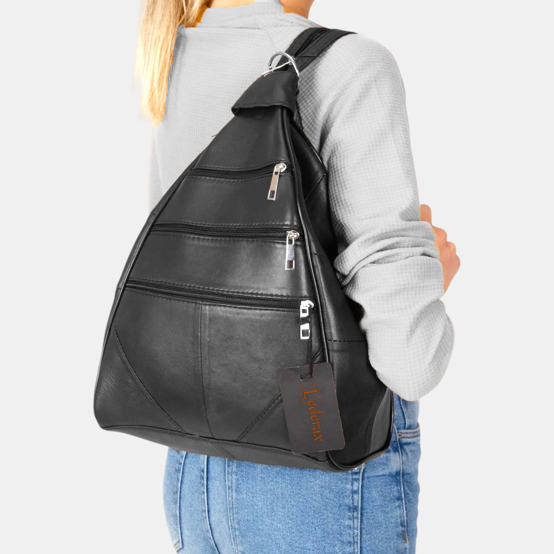 Lederax Hakiki Deri Çok Gözlü Sırt Ve Omuz Çantası LD52 Siyah