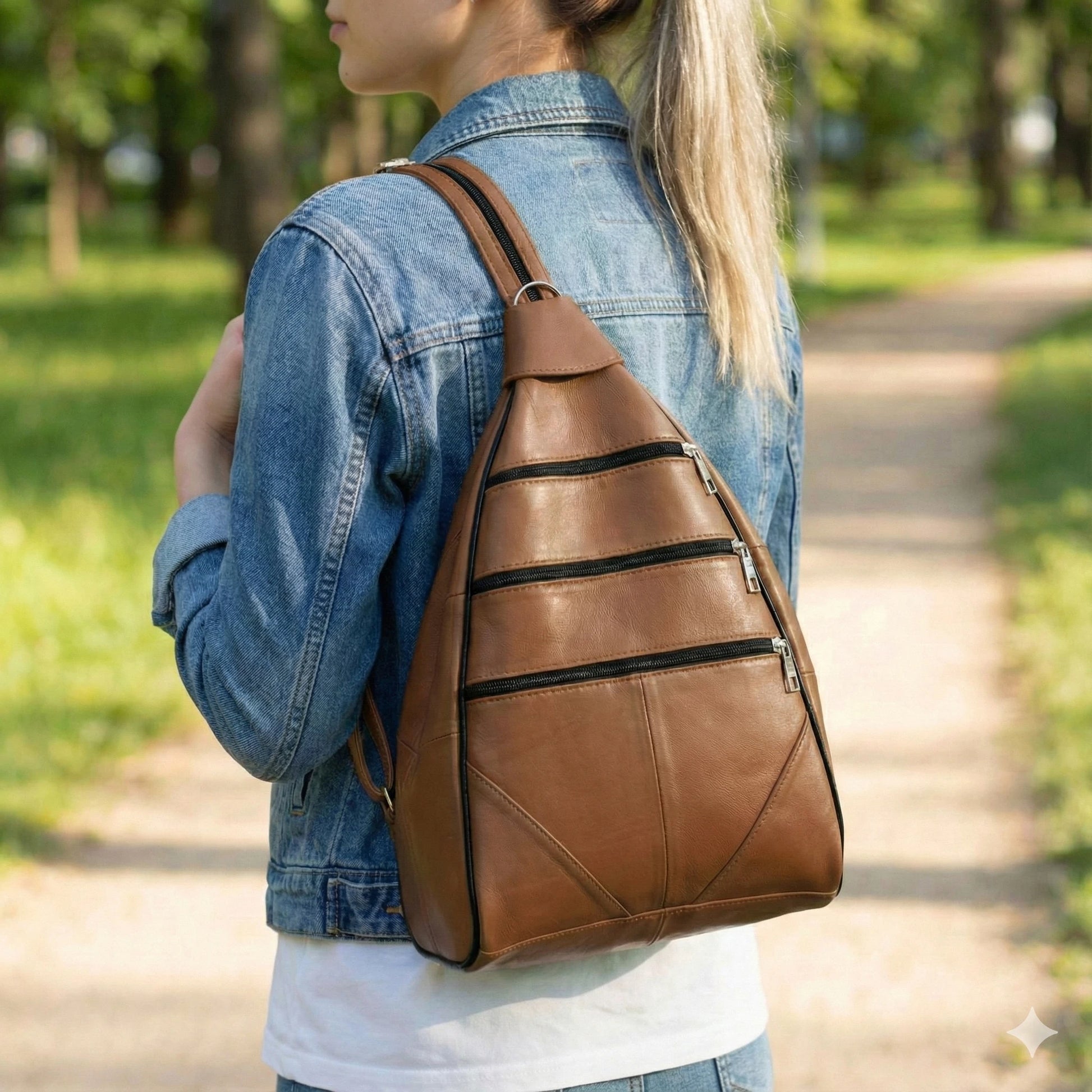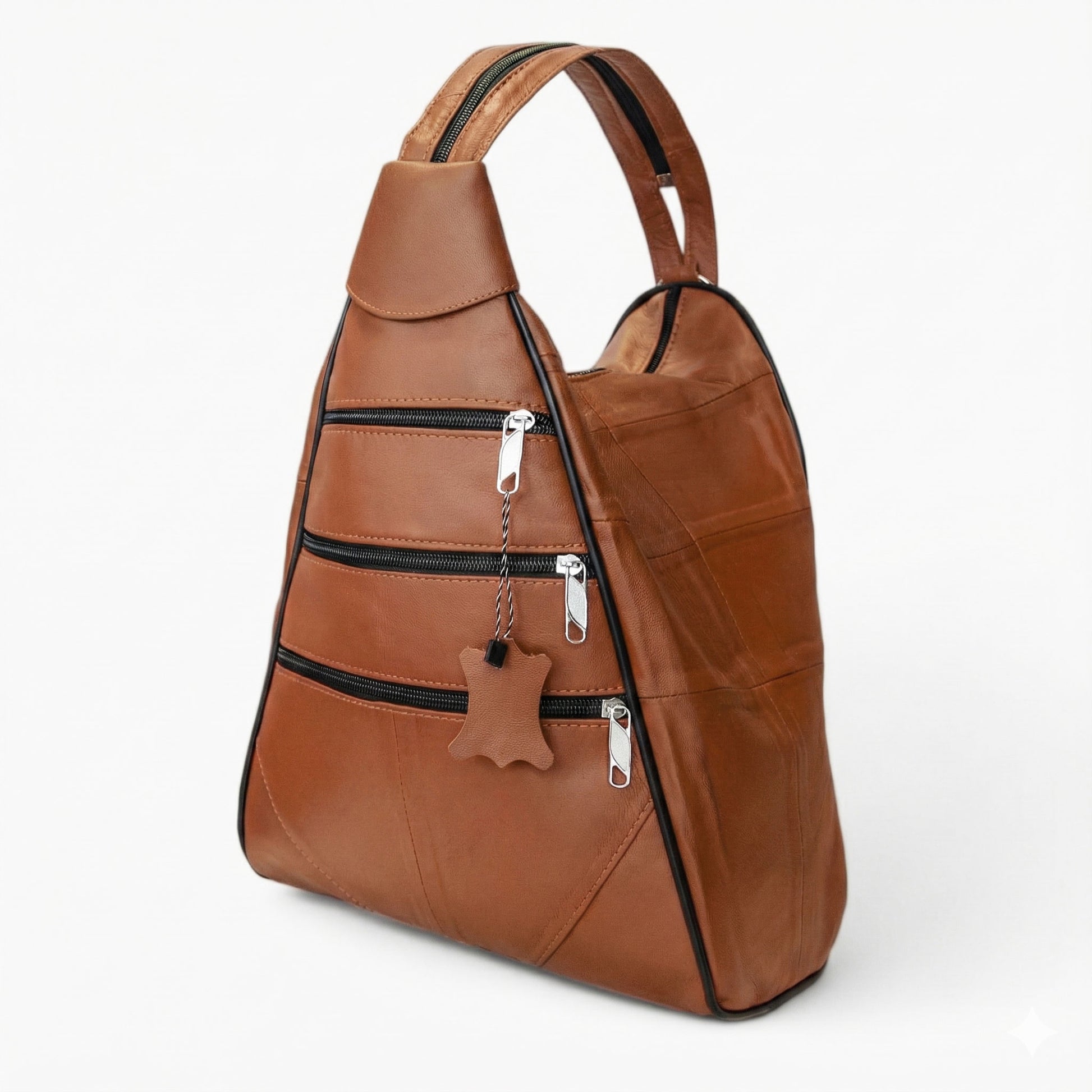 Lederax Hakiki Deri Çok Gözlü Sırt Ve Omuz Çantası LD52 Taba
