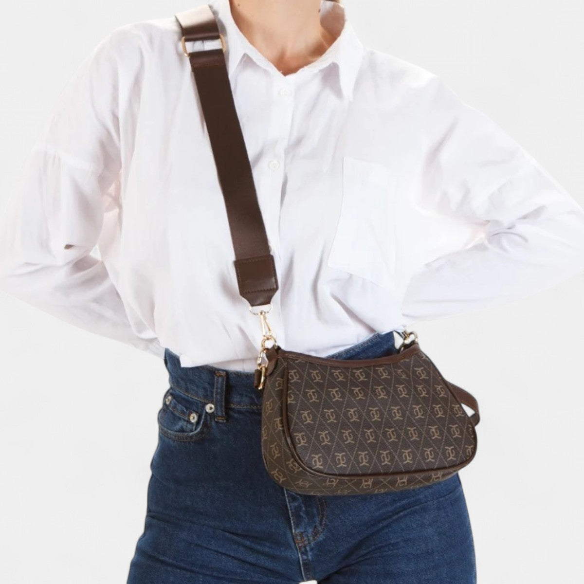 Lederax Suni Deri Baget El ve Omuz Çantası LD578 Kahverengi