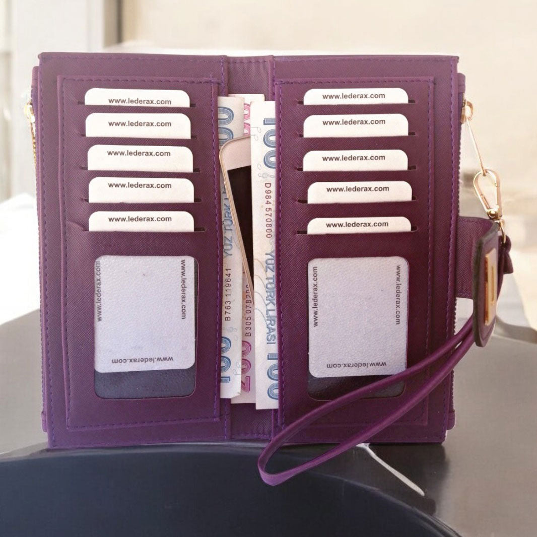 Lederax Suni Deri Kadın Kartlık Cüzdan LD254 Mor